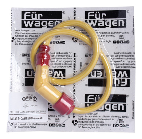 Cable Bujía 55 cms 8 mm EPDM – SILICON Amarillo, con Capuchón No. 2 Motoneta 135 Grados Racing Fürwagen, Incluye resistencia 5k6, Polipropileno alta densidad FWCAP2+CABLE8MM-Amarillo