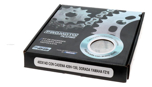 JUEGO ENGRANES PROMOTO PLATINO 40DX14D CON CADENA 428H-130L DORADA YAMAHA FZ16